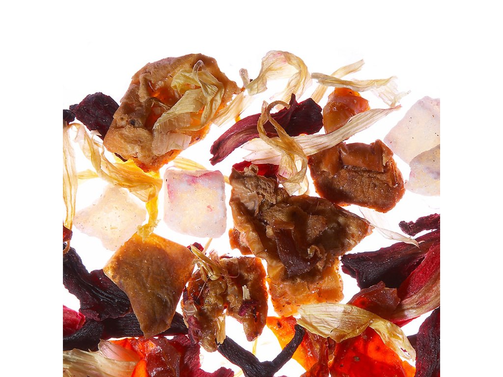 Package contents: Hibiscus flowers, pineapple pieces (pineapple, sugar, acidity regulator: citric acid), apple pieces, grapes, mango pieces (mango, sugar, acidity regulator: citric acid)