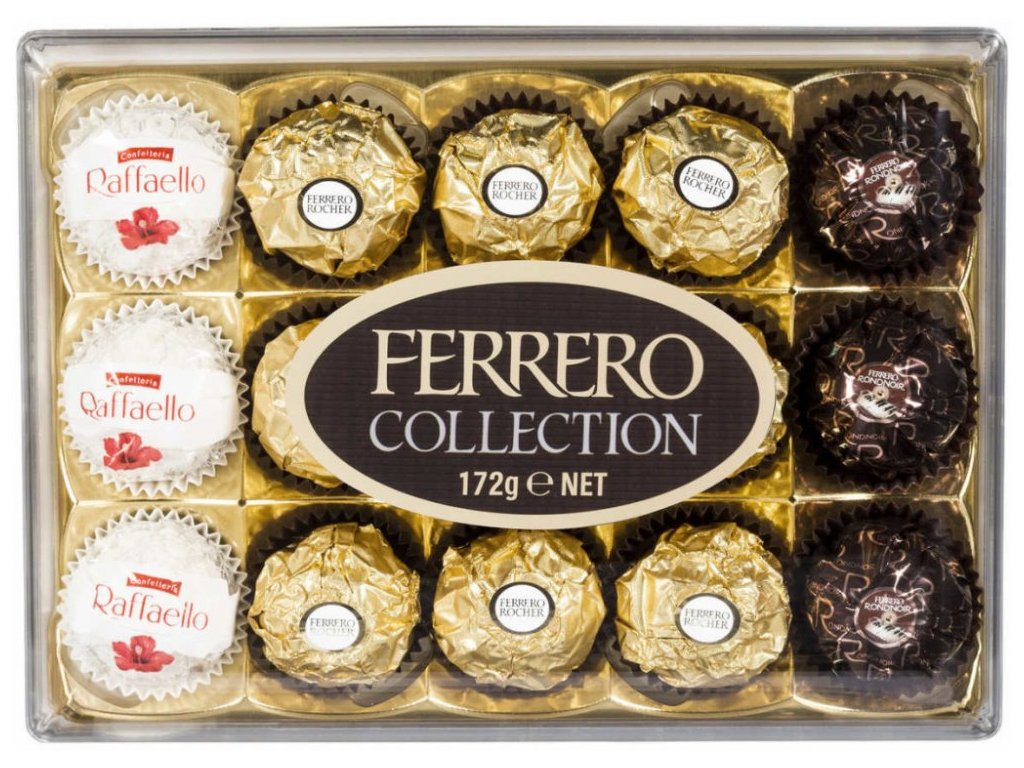 MILKY chocolate 30% (sugar, cocoa butter, cocoa mass, defatted dried MILK , BUTTERY fat, emulsifier: lecithins ( SOY ); vanillin) HAZELNUTS 28.5%, sugar, palm oil, WHEAT flour, dried whey (from MILK ), cocoa powder with reduced fat content, emulsifier: lecithins ( SOYA ), raising agent (sodium bicarbonate), table salt, vanillin.