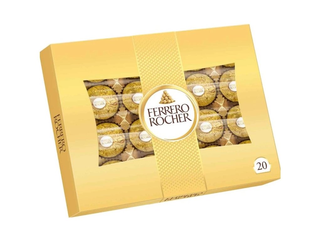 Each Ferrero Rocher ball is composed of fine milk chocolate, hazelnut and cream with chopped nuts.