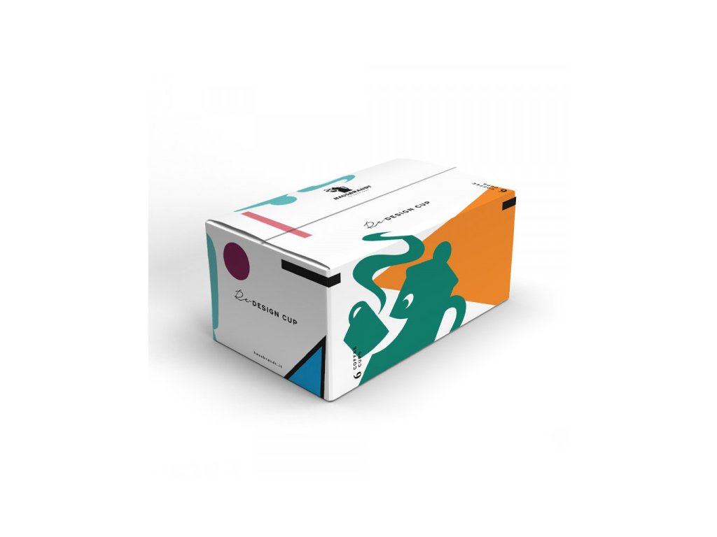 The new "Re-Design Cup" range looks like this: a playful restyling with bright and vibrant colors that makes and breaks the iconic Hausbrandt pictogram.