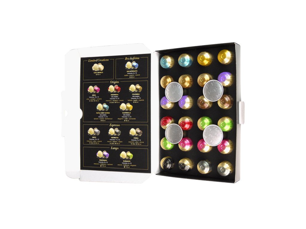 This gift pack contains the following ground coffee capsules: