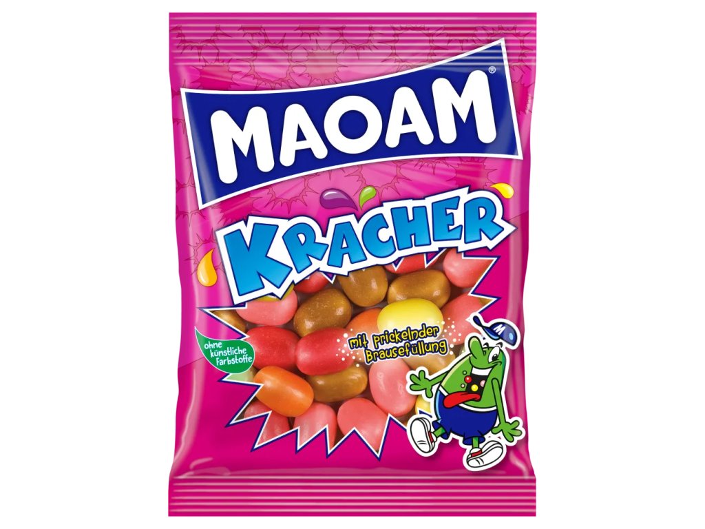 Anyone who bites through the shell right away will experience the combination of fizzy filling and the unique chewing pleasure that is so typical of MAOAM Kracher. You don't even have to decide between lemon, orange, strawberry, apple, raspberry or cola. There are plenty of each type. It's seriously the bomb!