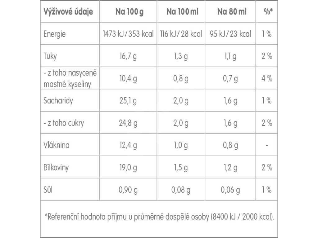 Whole milk powder (61.8%), instant coffee (36.5%), stabilizers (potassium phosphates, sodium citrates), emulsifier (soy lecithin).