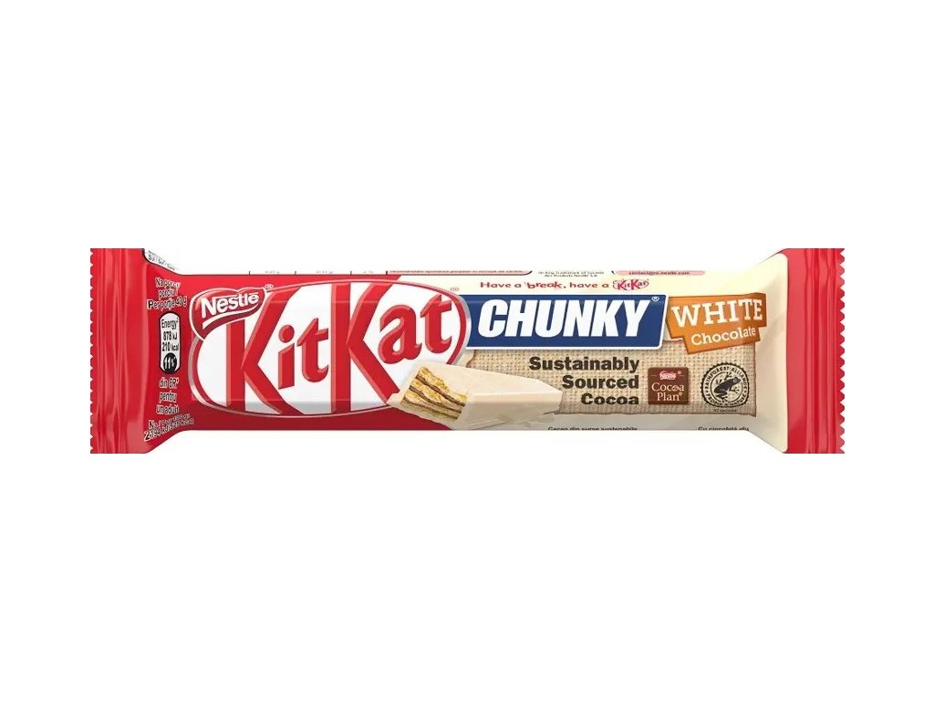 A bar with a crispy wafer and a delicate filling in delicious white chocolate