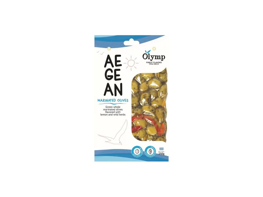 Olymp green olives with pits in marinade with lemon and herbs 250 g