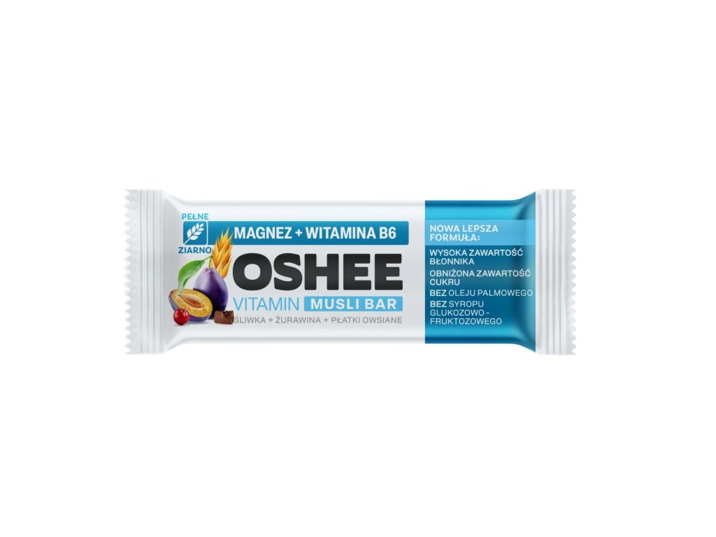 OSHEE Vitamin Musli Bar Plum Cranberry is the ideal snack for those who value healthy and tasty solutions. This delicious cereal bar combines prunes and dried cranberries, all covered in a delicate cocoa-milk coating. Enriched with a complex of vitamins (A, D, C, B1, B2, B6, B12) and magnesium, OSHEE Musli Bar not only provides energy, but also supports your health.