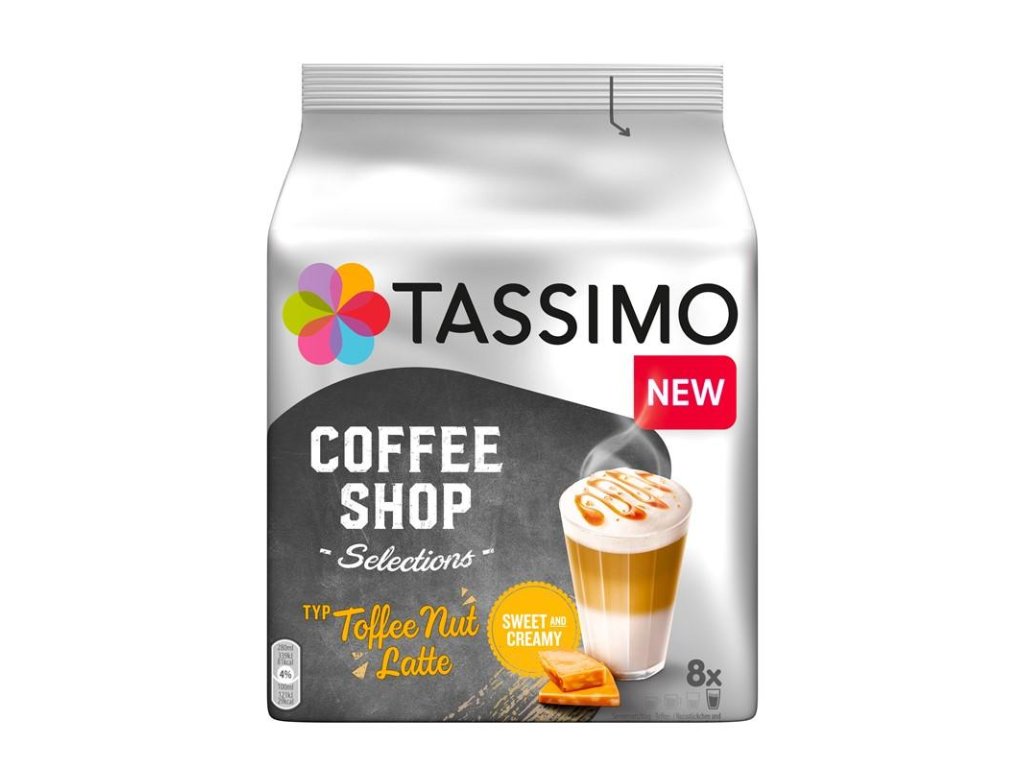 Enjoy a non-traditional caffe latte with the flavor of sweet caramels with roasted nuts. Deliciously smooth espresso with a rich foam with flavors of caramel and roasted nuts. The Jacobs brand is characterized by a long tradition and experience in roasting coffee, thanks to which the highest quality of the drink is guaranteed. The package of Tassimo Toffee Nut Latte coffee capsules contains 16 capsules from which you can make 8 drinks.