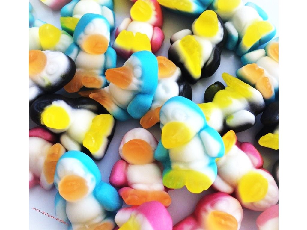 Jelly penguins With the taste of raspberries, strawberries, black currants and red berries..